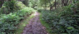 ところどころに石畳舗装の道もあります。この辺りはもともとはガレ場で、江戸時代にも石畳が敷かれていたようです。しかし、長い間に石が劣化し摩耗したので、最近になって舗装し直したようです。