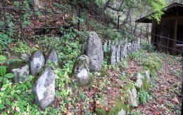 坂はいったん緩くなると、小径の脇に「三十三体観音」という石仏群が集められている場所があります。説明によれば、この山中にあった熊野権現社前に放置され埋まっていた石仏群を掘り出して、ここに安置したのだとか。ただし、ここにあるのは29体で、残り4体は未発見だということです。