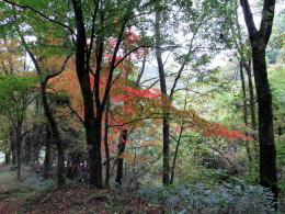 渓流沿いの谷は急ですが、斜面には陽が射し込むので、晩秋には紅葉を見ることができます。