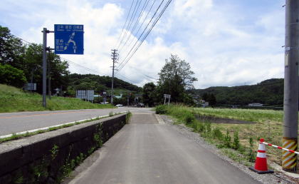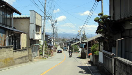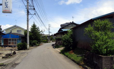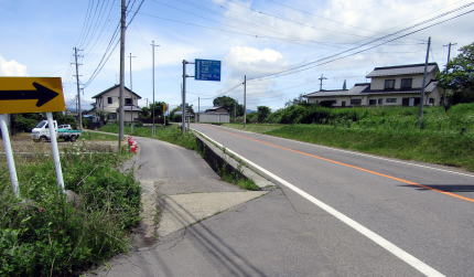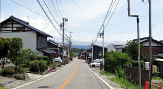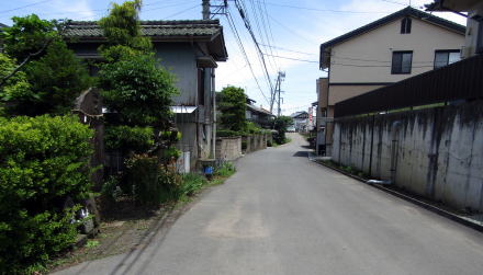 クルマで国道142号を東に走ると、県道44号との分岐から400メートルほど進んだところで、左に分岐する道が旧中山道の遺構です。かつては、八幡宿を通る中山道の路面は2メートル前後の起伏が波打つように連続していたそうですが、現在の道路は拡幅され路面が滑らかに均されて舗装されているので、往時の面影はほとんどありません。