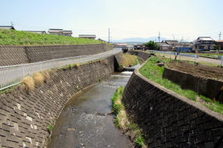 中山道と八幡宿は、布瀬川が右岸(南側)に形成した河岸段丘上に位置しています。左岸の背後には御牧原台地が迫っています。虚空蔵山の東尾根から続く布瀬川右岸の河岸段丘の南側は、中沢川によって削られ、細い峡谷が八幡社の東側まで続き、そこで中沢川は流れを北に転じて布瀬川に合流します。ここで八幡宿が位置する丘は断ち切られます。中山道は中沢川の谷間を越えると、東に向かってしばらくのぼり坂斜面が続き、布瀬川と千曲川の谷間に挟まれた広大な舌状丘陵を越えます。そして千曲川まで降りていく道筋となるのです。