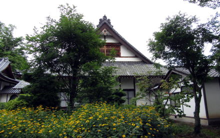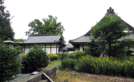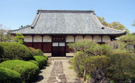 ![]() ▲19世紀はじめよりも前に建立されたが未完成と伝わる山門。装飾性がまったくない四脚門だが、薬医門につくり上げる計画だったと見られる ![]() ▲境内参道脇に祀られた神社祠。何の社かはわからない。 ![]() ▲六角形の石製の台座の上に並ぶ石仏。中央は大日如来か。 ![]() ▲本堂は漸増でもあるようだ。「常泉禅林」の扁額が左寄りにある。 ![]() ▲本堂の前は境内庭園 ![]() ▲本堂と庫裏を結ぶ廊には唐破風の入内嶋が設えられている ![]() ▲庭園の西端からの本堂と庫裏の眺め ![]() ▲尾崎橋の下を流れる八丁地川の河床は段差が連続している ![]() ▲本堂の背後にも蔵などの堂宇が並んでいる |