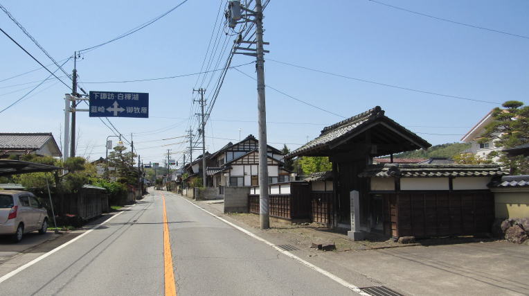 こういう地理的な事情からして、八幡宿の西の外れと東端とでは、800メートルほどの道のりで20メートルもの標高差があります。勾配は25パーミルとなります。粒子の細かい粘土質の表土は、降雨の後にはひどい泥濘になるので、岩村田や塩名田方面から西に向かう旅人や荷を運ぶ馬方とか歩行役は苦労したはずです。クルマで運搬したり移動したりする現代人には、経験できない難儀です。