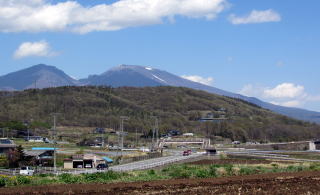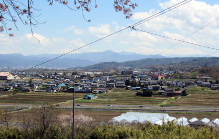 そんな八幡宿の北側の背後には御牧原台地が迫っていますが、視線を少し北東方向に転ずると、桑山地区の背後のなだらかな丘の彼方に雄大な浅間山を望むことができます。