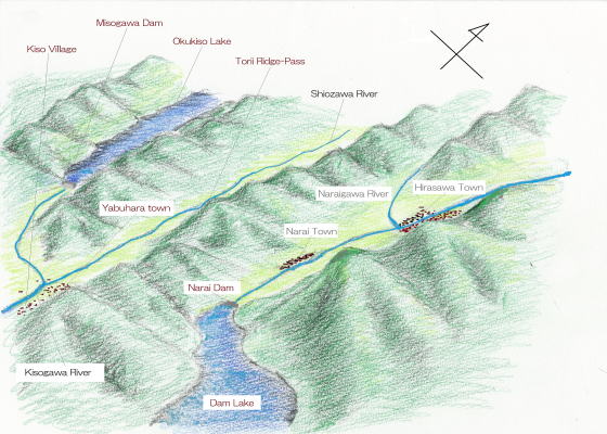 Therefore the road from Shiojiri to Narai is a journey raising up and from Yabuhara to Tsumago is a journey going down.