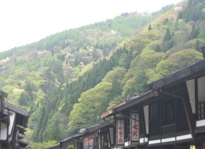 木曾路もその宿駅も大きな山並みと深い森林に囲まれている。