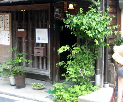開店すると、蔀を開け放って光と風を入れる。暖簾が涼しげ(7月半ば)。 |