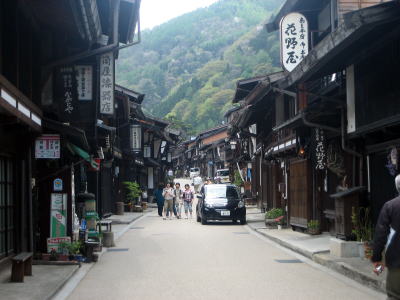 朝のうちは、店舗への納品やら準備やらの車が入り込む。もちろん観光客も入り込む。一般住民のお出かけ準備もある。