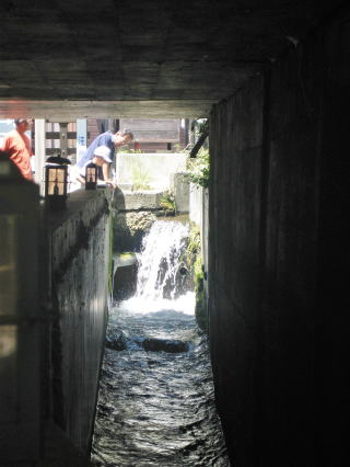 豊富な水も、街を流れたのち、やはり線路をくぐって奈良井川に注ぎ込む。 |