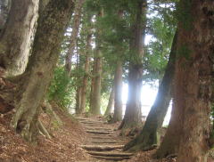 山裾を行く街道の傍らには、古くから人びとの手が入った杉並木があったという。往時、人びとは杉の根元を踏むように歩いて街道を旅したのだろう。