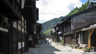 街の家並みが始まる地点の右手(西側)には方形の石垣が2つ向かい合ってます。これが桝形で、正規の宿駅の入り口です。街道から二度直角に曲がらないと宿場に入ることができません。