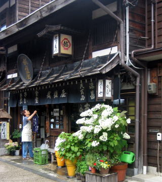 ここでは、そういう季節の演出にことのほか巧みな2つの店舗、松屋茶房と越後屋の店先に注目してみました。