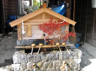 そこから南に向かうと間もなく右手に水場があります。街歩きの前に、冷たい水を一杯いかがですか。一息入れながら、季節の息吹を感じてください。