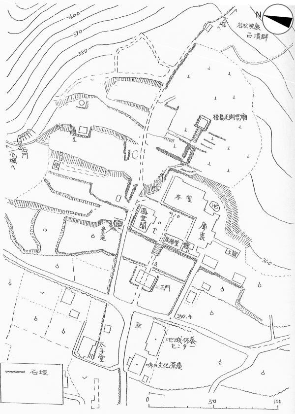 ここで引用している図版を作成した宮坂武男氏は、そのように見ています。そして、領主居館は、堅固な石垣の上の壇にあったものと推測しています。戦国時代の居館居着いては、私も同じ意見です。戦国時代の縄張り構想では当然そうなるでしょう。