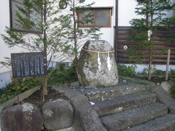 この交差点は、谷街道と谷脇街道とが出会うところで、今も昔も街の中心というべき場所だ。ここには「市神」がある。街の繁栄と安全を祈願する守護神で、何も刻まれていない自然石だ。