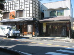 大通りの左手(東側)は、金融機関と高井鴻山記念館、そして栗菓子店、酒造会社がある。