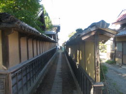 ところで、骨董店の北側には、築地塀に挟まれた狭い小径がある。奥には陣屋跡と石の祠がある。