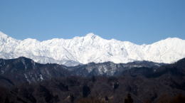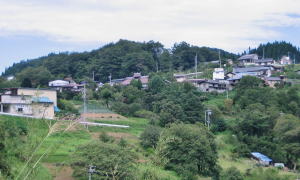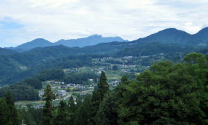 高府の街は土尻川が刻んだ幅広の谷間にある集落で、この集落の西端まで――小川村北東端にそびえる――飯縄山が尾根を伸ばしています。飯縄山の山頂下に大洞高原があります。戸隠街道は、戸隠山をめざして大洞高原にのぼっていく道です。