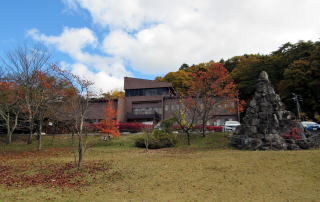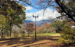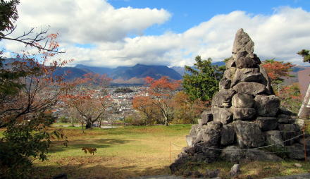 神社から1キロメートルほど南に歩くと、街道は西向きに転じますが、そのまま直進して坂をのぼると大町公園と山岳博物館にいたります。