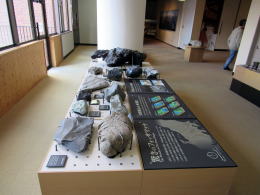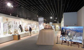 とくにプレートテクトニクスによるアルプス造山運動や化石、鉱物についての地学的・地質学的資料が豊富です。標高3000メートル級高山の頂上付近にアンモナイトなどの海生生物の化石があるのはなぜか、が説明されています。