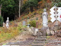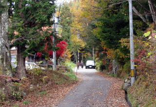 神社の北脇から霊松寺山の遊歩道が山腹まで延びています。この道は霊松寺への参道ともなっていて、この日は地元の老婦人たちが参詣と山歩きを兼ねてウォーキングをしていました。