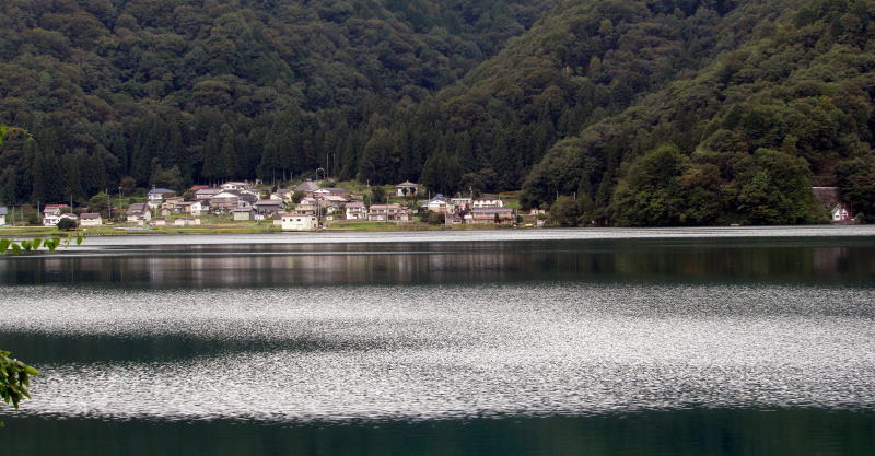 集落の家並みは山腹の急峻な斜面から湖畔まで続いていますが、時代を下るにしたがって家並みは湖畔に降りてきたようです。