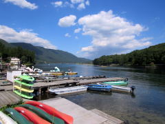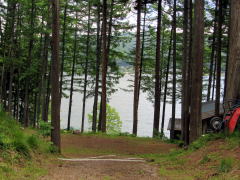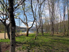 青木湖の南端を出発して農具川の渓谷を南進すると、まもなく中綱湖北岸にいたります。そこから湖西岸の急峻な尾根下を往く小径をたどって中綱の集落まで歩きます。