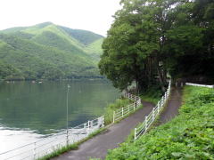 急峻な尾根裾の道ですが、美しい湖面を見おろしながら、進昭寿と広葉樹の混合林や山桜並木を愛でながらの楽しいトレッキングです。