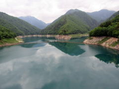 高瀬川の上流部を締めくくるのはは大町ダム。北アルプスからやって来て高瀬渓谷に集まる膨大な水を貯え、発電します。