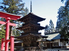 明治維新で松本藩の混迷によってほとんどの寺院・仏閣が壊されてしまった大町で、神社に残された観音堂と三重塔を訪ねます。