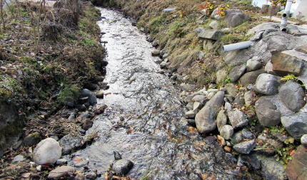 自然のままではなく、人の手が入ってそういう用水路の環境・植生が保たれているのでしょうが、少なくとも自然状態を模倣して「野生の小川」の景観を呈しています。