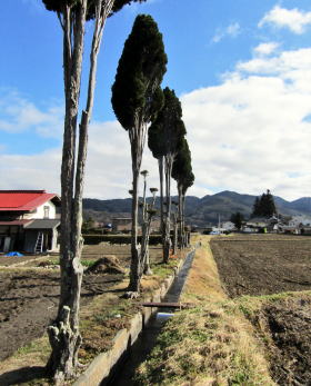 今回は借馬集落の家並みから離れて、家並みを取り囲む水田地帯のなかを散策してみました。