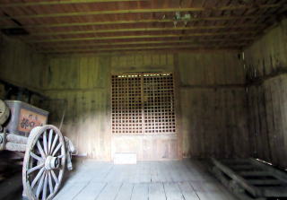 ▲お堂の内部: 竜吐水という消防機具が保存されている