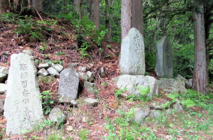 この地の不動尊は金山不動尊というようですが、金山とはこの一帯に張り出した尾根をいうのでしょうか。この山腹の西にある稜線の山頂は小熊山(標高1302m)と呼ばれています。木崎の南に借馬という集落があって、その鎮守が金山神社という古い神社なのですが、この神社と関連があるのでしょうか。
