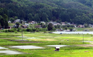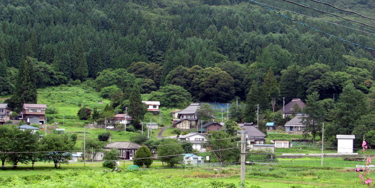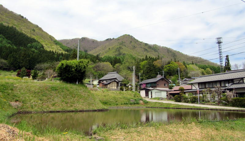往時の街道は、坂道を下りきらずに山腹を南進する小径を往くものだったようです。屈曲や起伏が激しいので、明治以降に、水田開発や観光業の振興のために湖畔に下る道を建設し、道沿いに集落の家並みを移したのかもしれません。あるいは、跡取り息子は山腹の古くからの家屋を相続し、次男三男たちが湖畔の道沿いに新たな所帯と住居を構えたのかもしれません。