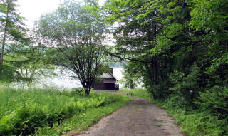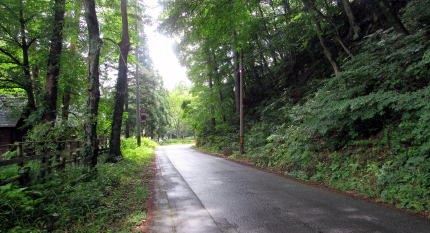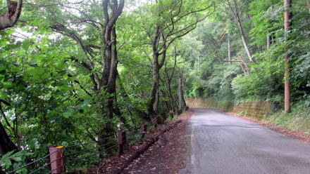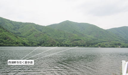 そういう事情で、西湖畔の道は湖畔の別荘やペンション、キャンプ場、ボート停泊所などのレジャー施設を結びながら南下していきます。道筋で一番高い地点は、キャンプ場がある辺りです。そこが海ノ口地籍の南限だと思われます。