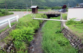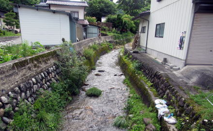 ▲木崎湖に向かって流れる稲尾沢川