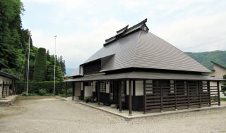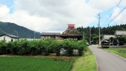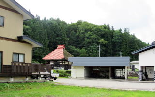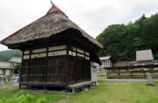 この集落には名も由来も知れない古い小さなお堂があります。小ぢんまりとして川葺き造りです。その周りには墓地となっています。