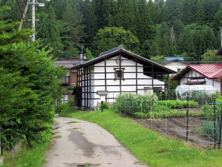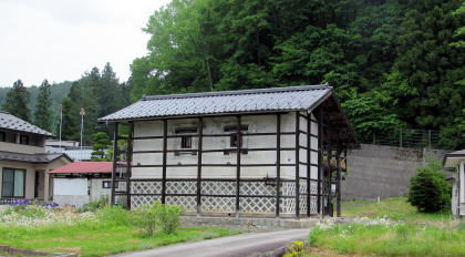 ▲道脇に立つ土蔵は北安曇に特有の造り