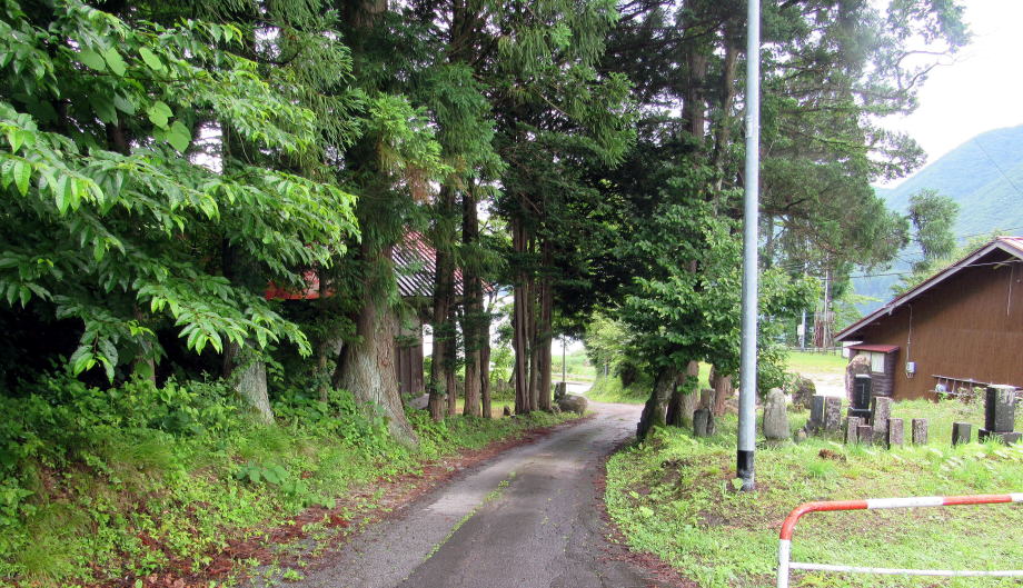 JR大糸線に沿って木崎湖東岸を国道148号が南北に通っています。大糸線の海ノ口駅から400メートルほど北に国道から北に向かって丘をのぼる小径が分かれていきます。今回は、この道をたどって、集落をめぐり、祈りの場を探すことにします。