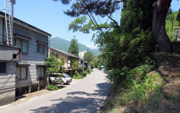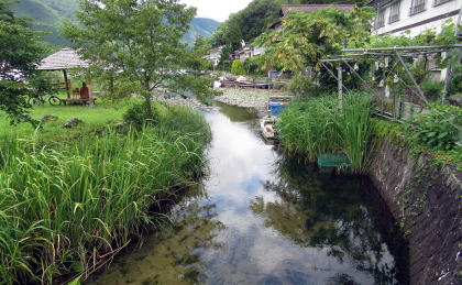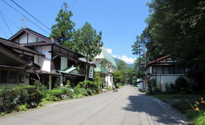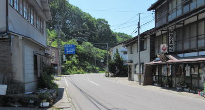 「道の家」「近江屋」「だるまや」・・・と旅館の看板を眺めながら、南に進みます。この先で道路は、農具川に沿って緩やかに蛇行します。