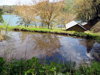▲中綱湖への農具川の注ぎ口付近
