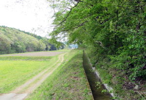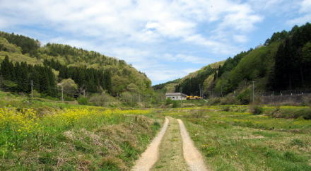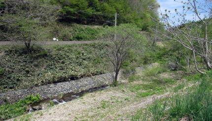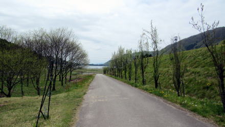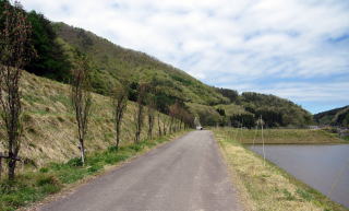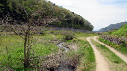 ![]() ▲千国街道はゆるやかに左に曲がって農具川渓谷に向かう ![]() ▲谷間が最もくびれたところの谷底を流れる農具川 ![]() ▲南流する農具川: 右側に見あるのが千国街道跡の農道 ![]() ▲河岸段丘は石垣で補強されて棚田の畔(あぜ)を支えている ![]() ▲農道で来し方(上流方面)を振り返る ![]() ▲木崎湖北東岸の眺め: 海ノ口東の集落が見える ![]() ▲木崎湖北岸の眺め: 画面中央部にパラグライダー着陸場がある ![]() ▲千国街道跡の農道: 舗装された道の彼方に木崎湖の湖面が見える |