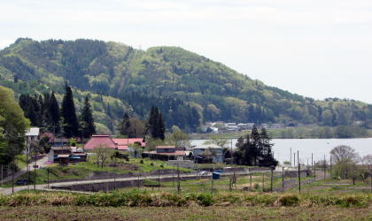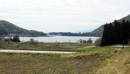 木崎湖の北東岸から北西岸までの一帯は海ノ口と呼ばれる地籍です。JR大糸線の海ノ口駅は北東湖畔にあります。主だった集落は湖の北東岸と北西岸とに2つあります。この2つのあいだにある北岸は、もともと湿原地帯で、いまは水田地帯となっています。