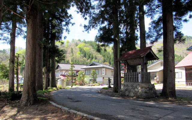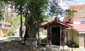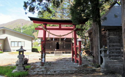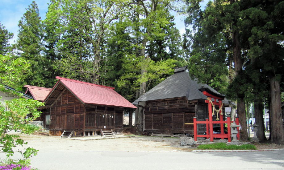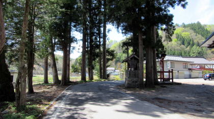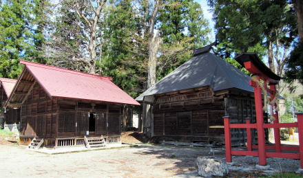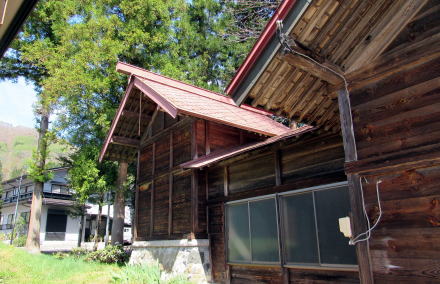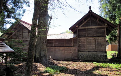![]() ▲鬱蒼とした杉並木の下は昼でも薄暗い ![]() ▲鳥居は明神社風の造り ![]() ▲拝殿の奥は本殿を覆う蓋殿 ![]() ▲北側から本殿(右)と拝殿を眺める ![]() ▲千国街道から境内を眺める