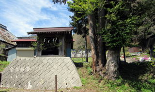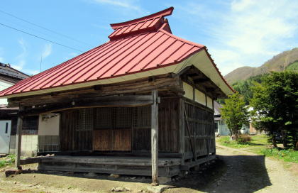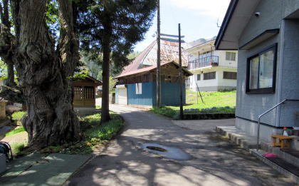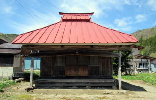 村の中心部を通る街道に沿って薬師堂があって、そこから120メートルほど南に水神社があります。