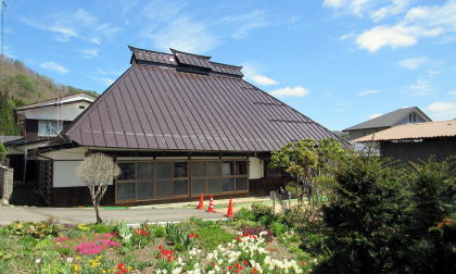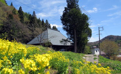 ▲春の陽射しの下で静かにたたずむ薬師堂