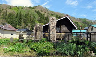 薬師堂の北脇には庚申塔や石仏が並んでいます。ということは、かつてはここが村人が集まり祭事を催す中心部だったということになりそうです。薬師堂の南にある杉並木の西側が水神社の境内ですが、道を挟んで東側に筆塚が立っています。その昔、神社に手習い教場があったのかもしれません。