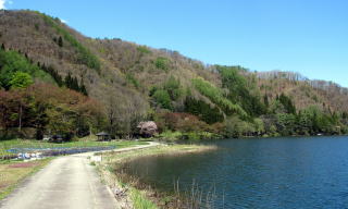 中綱湖の南西岸は、中綱沢が形成した扇状地となっています。その扇状地に中綱の集落があります。