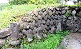 庵の背後、石垣の下には馬頭観音などの石仏とともに、歴代庵主(たぶん尼僧)の墓標が並んでいます。幕末までは庵主が村の子どもたちに手習を指導していたのかもしれません。おそらく明治末~大正期までは、庵を護っていた尼僧がいたようです。